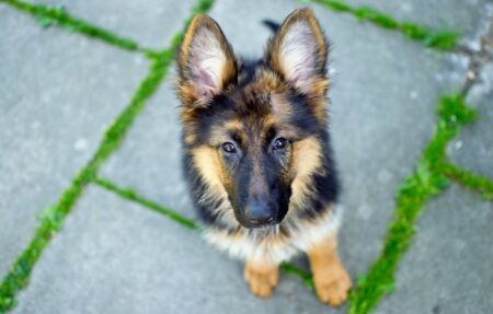 German Shepherd: Cute Puppy Gaze Wallpaper