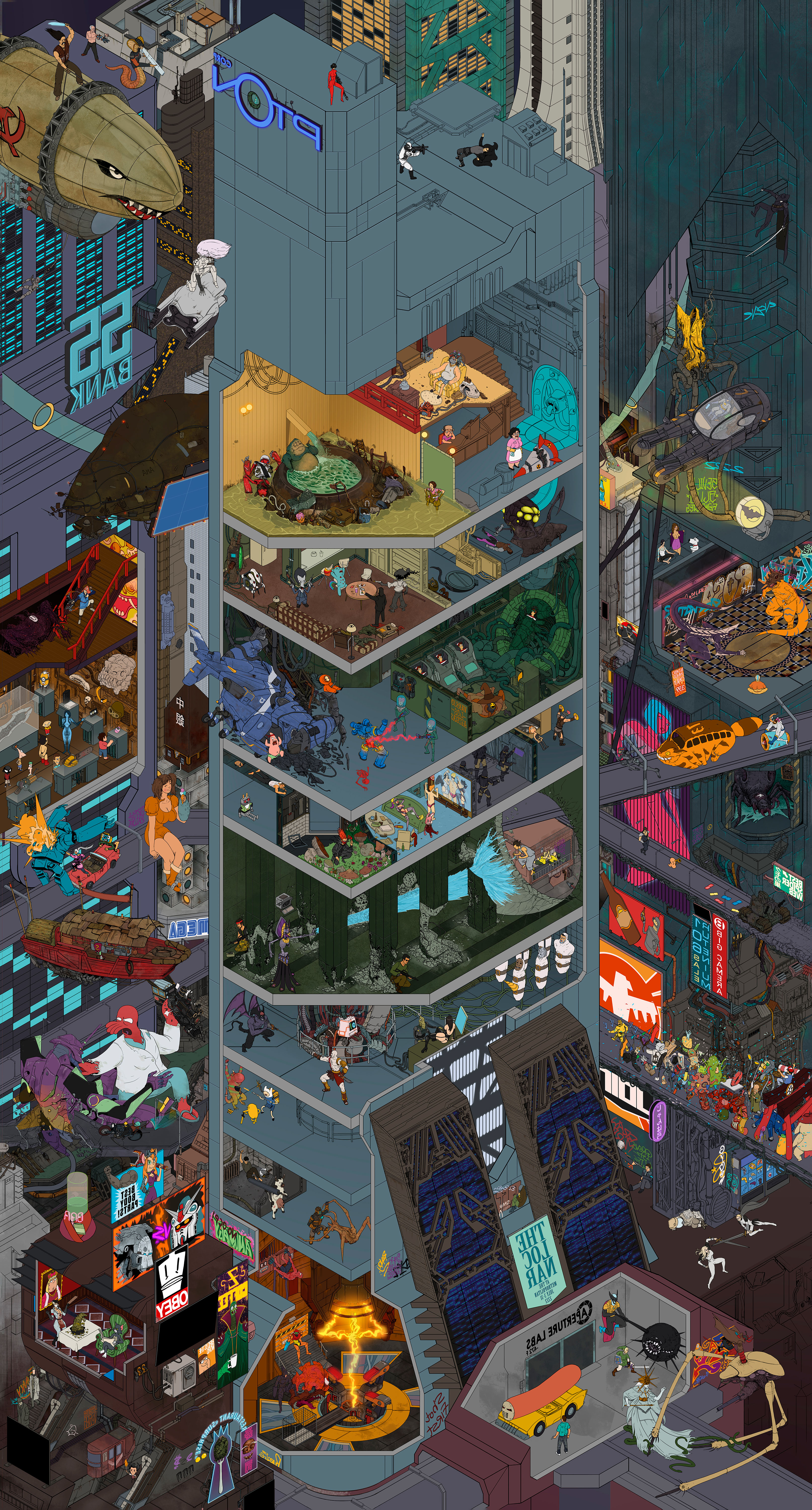 Attack on Titan: Unleashing Humanity’s Courage against Colossal Threats, this captivating wallpaper showcases a towering building amidst a sea of determined individuals, embodying the epic struggle for survival in this gripping Anime series.